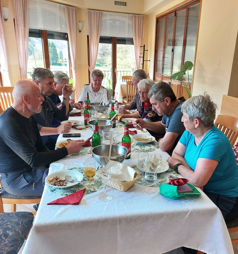 Torkova skupina 13.maja 2025 opravili smo zelo zanimivo krožno pot iz Trga Podsreda, kjer smo se pri Upravi Kozjanskega parka pozdravili z Dušanom Klenovškom, nadaljevali do Levstikovega mlina in po grajski učni poti mimo grajskega ribnika do Florijanove kapelice in na Grad Podsreda. Pot nas je vodila naprej do Osredka po cesti, potem pa smo se spustili nazaj v dolino Bistrice v Loke (delno po poti E7). Nadaljevali smo po cesti do Kolarjeve domačije v spominskem parku Trebče (brezplačen ogled), kjer na novo urejajo odsek regionalne ceste, da bodo zaščitili žabjo populacijo (EU projekt za zaščito naravnih habitatov). V nadaljevanju pa nas je pot vodila po delnem brezpotju ob potoku Sušica in na vrh romarskega svetišča Stare gore od koder pa smo se vrnili ob lepo obnovljenih kapelicah v središče Podsrede..V petih urah smo prehodili 14km, 510m nmv.