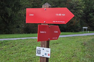 Markacisti PD Lisca Sevnica smo začeli z zamenjavo planinskih kažipotov na naših poteh s sodobnejšimi. Na samih kažipotih bodo na poteh, po katerih potekajo tudi različne obhodnice, narisani logotipi teh obhodnic. Na vseh nosilcih kažipotov (stebrih) pa bodo pritrjene posebne QR tablice. Na njih so napisani podatki, ki lahko pohodniku v slabem vremenu, megli, temi, pomagajo, če se izgubi. S fotoaparatom poskenirajte tole QR kodo, kliknite na povezavo, ki se vam prikaže in vse vam bo jasno. Bo pa ta zamenjava trajala kar nekaj časa, saj je vse odvisno od denarja, ki ga bo društvo lahko namenilo v ta namen. Zato pohodniki prosimo za potrpežljivost.