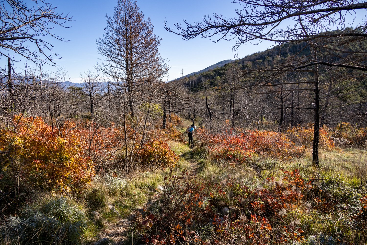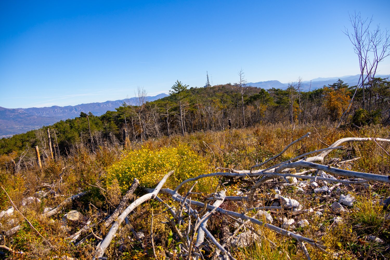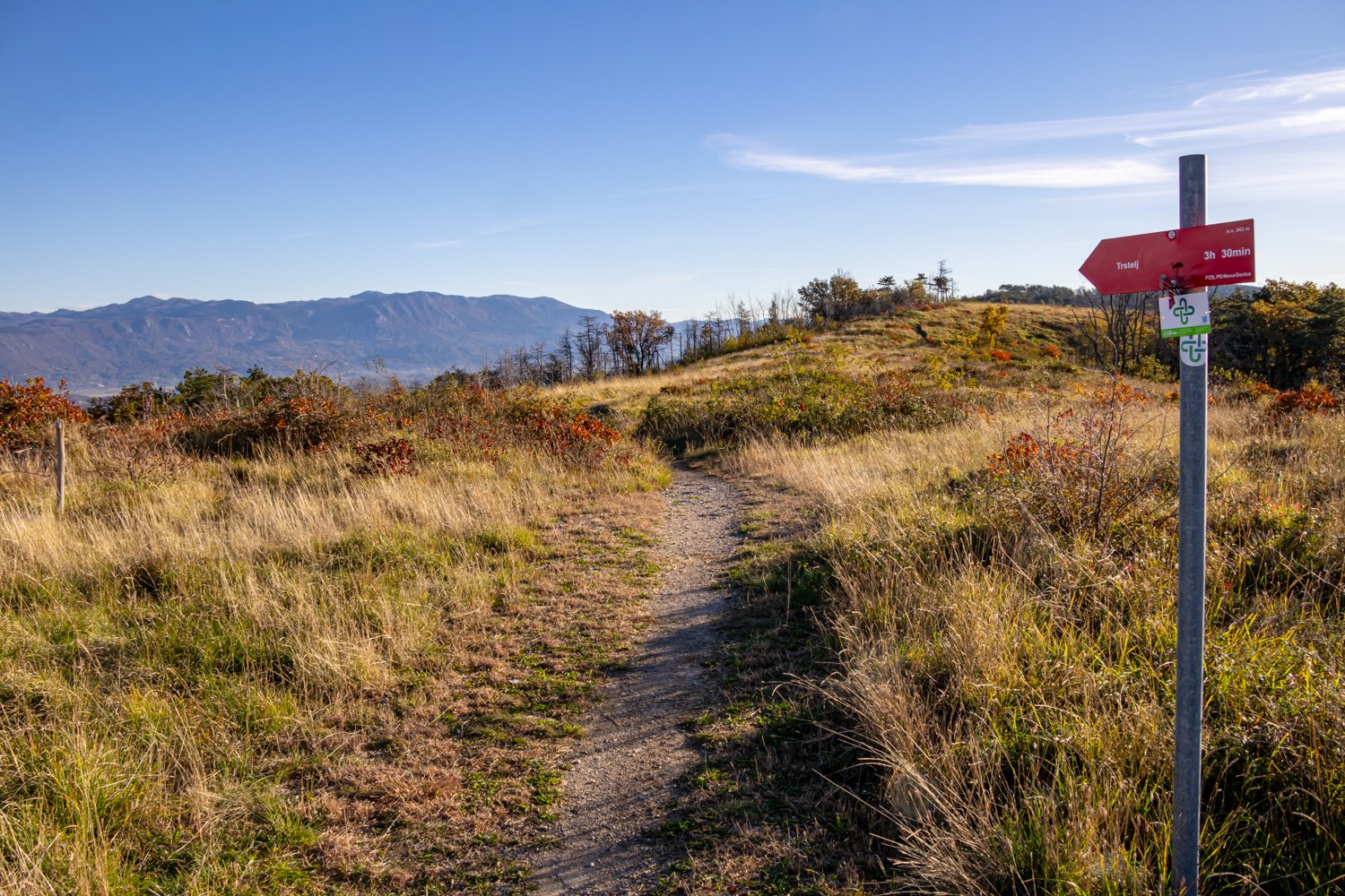 Izhodišče parkirišče na Cerju, po grebenu, kjer so še zelo vidne posledice požara leta 2022, od Cerja do Trstelja po vrhovih Fajti hrib ( 433 m ), Veliki vrh ( 463 m ), Renški vrh ( 452 m ), Vrtovka ( 502 m ), Lešenjak ( 553 m ), Stolovec ( 565 m ), Stol ( 623 m ) do zadnjega vrha Trstelj ( 643 m). Spust pa mimo Stjenkove koče na Trstelju do naselja Lipa z zaključkom ture - prehodili smo 11,2 km - vzpona pa je bilo tudi za dobrih 630 m - GPS sled poti: od Cerja do Trstelja