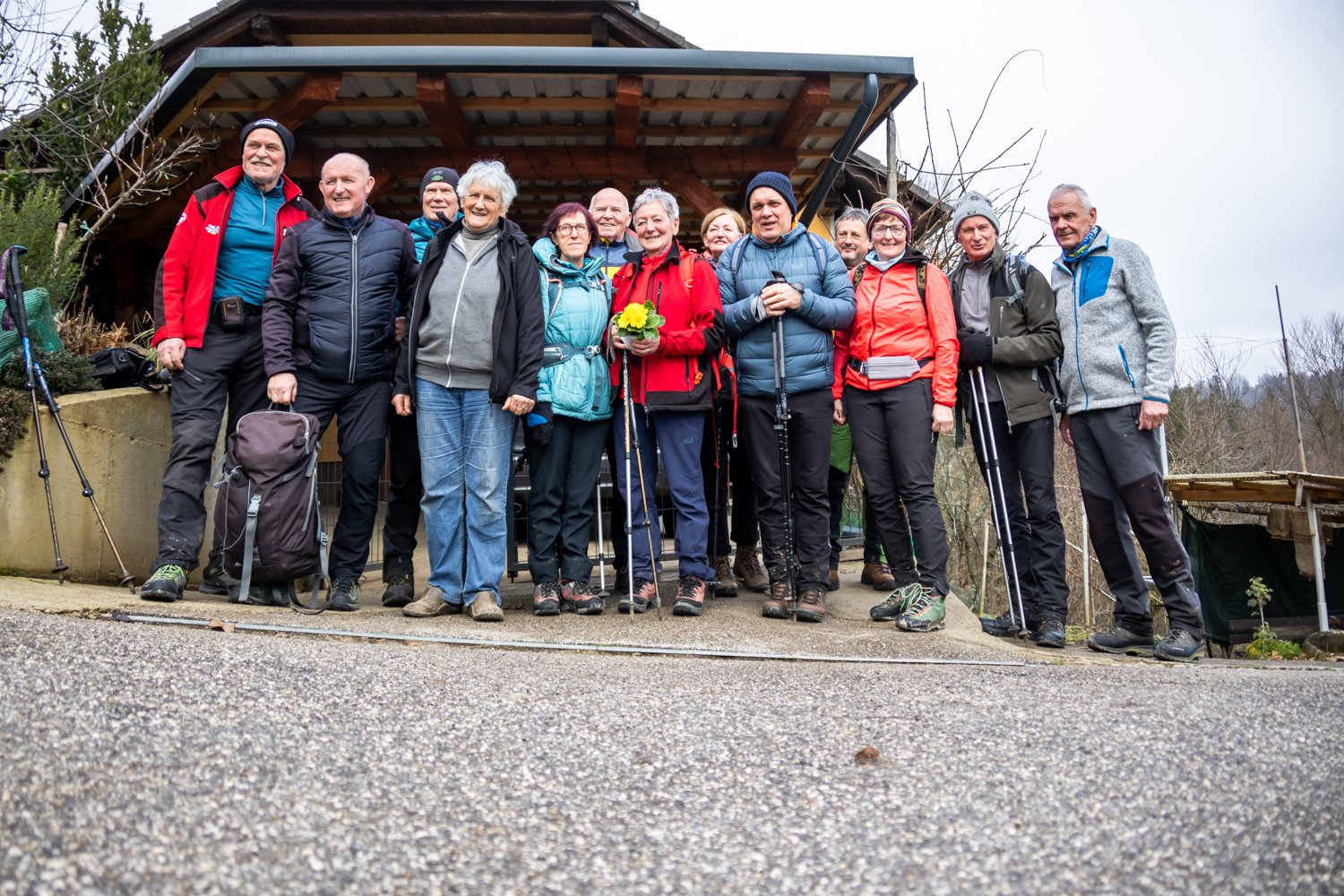 Turo smo začeli v Dol. Boštanju s parkirišča pri Hoferju, preko Boštanja na Vrh nad Boštanjem in čez Okič ter mimo Lovske koče na Brezovici do Križišča, nadaljevanje po cesti do Hinjc in čez Goveji dol na Vrhek nad Tržiščem, kjer nas je pogostila članica našega društva Mimi Radić, od tu pa se spustili v Tržišče na ŽP. Vlaka nismo dočakali zadi prometne nesreče na žel. prehodu pri Mokronogu - tako da smo logistiko na izhodišče naredili drugače - prehodili smo 17 km - nabralo pa se tudi za dobrih 500 m vzpona - GPS sled poti: Boštanj - Vrhek - Tržišče