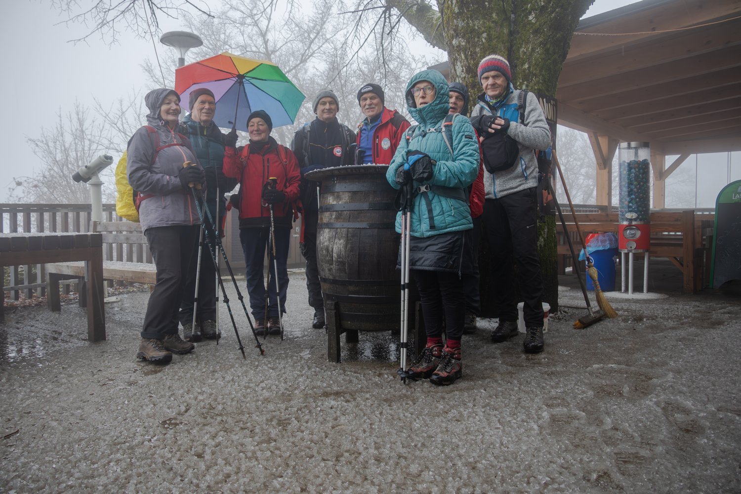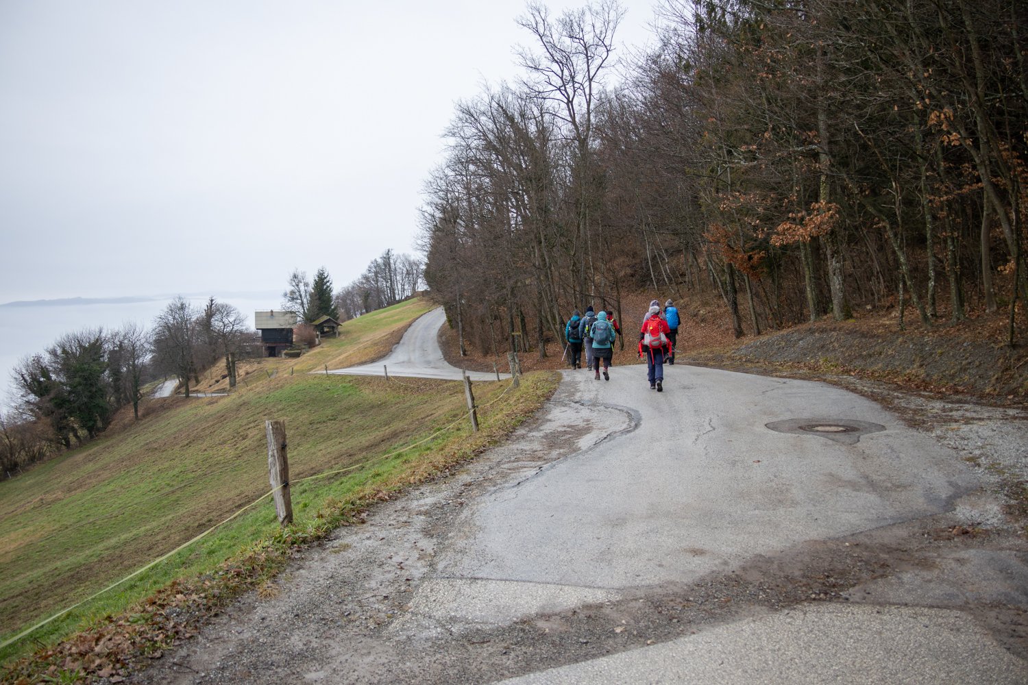Kljub slabi vremenski napovedi - torek je torek - se zapeljemo do parkirišča v Cirju in se povzpnemo do cerkve sv. Jošta pod Lisco. Tu skrenemo na neoznačeno prečno pot in po njej do markirane poti " strme poti" in na vrh Lisce. Povratek pa začetni del po sončni poti, nato po opuščeni - prvotni poti na Lisco, nazaj na izhodišče - prehodili smo slabih 5 km - GPS sled poti: Lisca