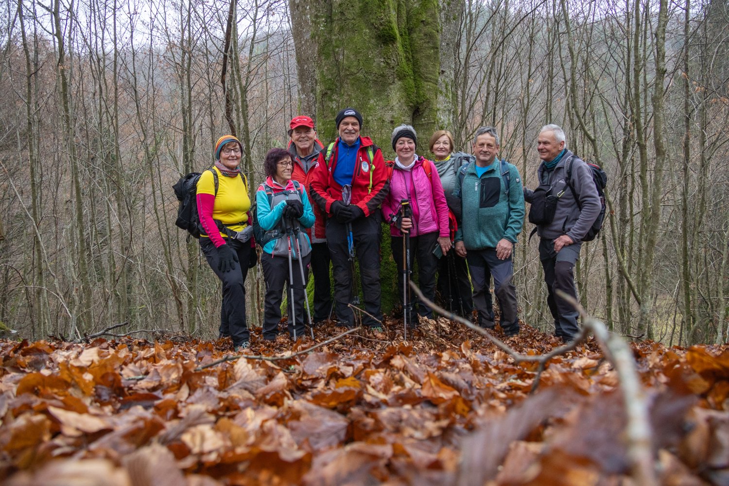 Tokrat se Ponedeljkova skupina Planinskega društva Lisca Sevnica zbira ob osmih v Zavetišču pod svetim Rokom, da krenemo še na zadnji pohod v tem letu. Po krajšem pogovoru se nas osem odloči za Zajčjo goro in stopamo preko Sevnične, potem pa kar v breg med hišami, ki so zrasle na pobočju. Teren je razmočen, zato hodimo raje po cesti in se oziramo v dolino, kjer se Boštanj šele izvija iz megle.